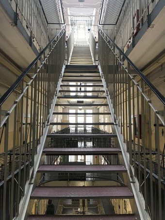 Das Foto gehört zur Serie "Gedenkstätte Bautzen ab 1994". Es zeigt den Treppenaufgang im Zellentrakt im ehemaligen Gefängnis der DDR-Staatssicherheit Bautzen II. Die Veröffentlichung in der Pixiothek erfolgt mit freundlicher Genehmigung der Stiftung Sächsische Gedenkstätten. Es gelten die Nutzungsbedingungen der Mediothek und Pixiothek.