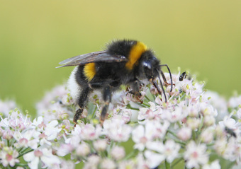 Das Foto hehört zur Serie "Hummeln". Es zeigt eine Dunkle Erdhummel (Bombus terrestris). Sie ist eine schwarze Hummel mit zwei gelben Querbinden und einer weißen Hinterleibspitze. Es gelten die Nutzungsbedingungen der Mediothek und Pixiothek.