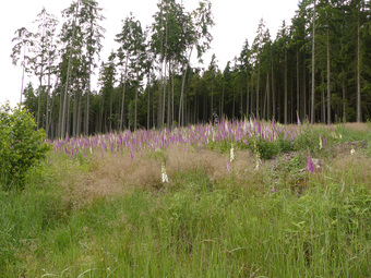 Das Foto hehört zur Serie "Blüten". Es zeigt Digitalis-Pflanzen auf einer Waldwiese, z. B. den Roten Fingerhut (Digitalis purpurea). Fingerhüte (Digitalis) sind eine Pflanzengattung aus der Familie der Wegerichgewächse. Es gelten die Nutzungsbedingungen der Mediothek und Pixiothek.