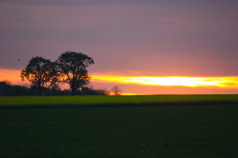 Das Bild zeigt Bewölkung und einem Streifen Abendrot beim Sonnenuntergang. Das Bild ist unter CC0 lizenziert und kann somit frei verwendet werden.