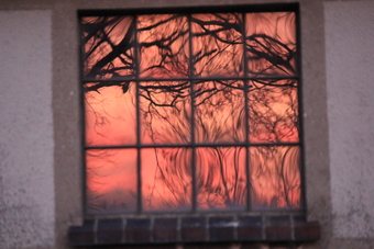 Das Bild zeigt einen Sonnenuntergang als Spiegelung in einem Fenster. Das Bild ist unter CC0 lizenziert und kann somit frei verwendet werden.