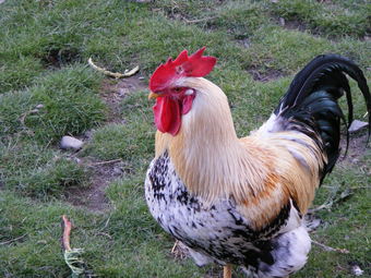 Das Foto gehört zur Serie "Bauernhof". Es zeigt einen Hahn in gemischter Färbung. Das Bild ist unter CC0 lizenziert und kann somit frei verwendet werden.