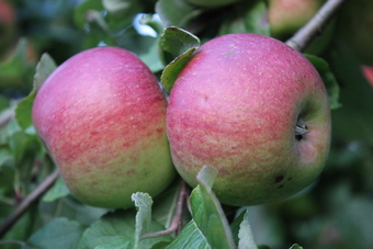 Das Foto gehört zur Serie Obst. Es zeigt Äpfel am Obstbaum. Das Bild ist unter CC0 lizenziert und kann somit frei verwendet werden.