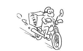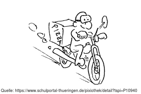 Das Bild gehört zur Serie "Paul". Es zeigt Paul auf einem Mofa Pizza ausliefern. Das Bild ist unter CC0 lizenziert und kann somit frei verwendet werden.