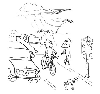 Das Bild gehört zur Serie "Paul". Es zeigt Paul als Radfahrer im Stress. Das Bild ist unter CC0 lizenziert und kann somit frei verwendet werden.