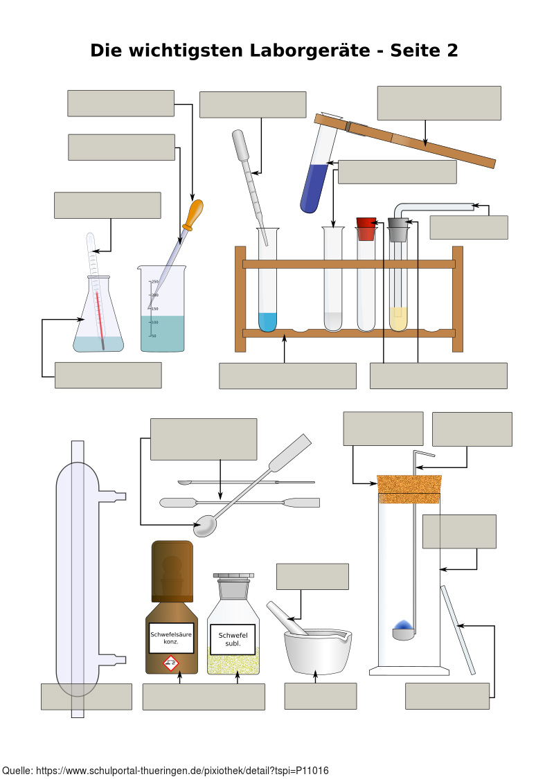 Das Bild gehört zur Serie "Chemie Grafiken". Es zeigt ein Arbeitsblatt mit Grafiken zu Laborgeräten, die beschriftet werden sollen. Das Bild ist unter CC0 lizenziert und kann somit frei verwendet werden.