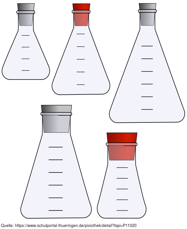 Das Bild gehört zur Serie "Chemie Grafiken". Es zeigt Grafiken von Erlenmeyerkolben ohne Schliff für die Gestaltung von Arbeitsblättern. Das Bild ist unter CC0 lizenziert und kann somit frei verwendet werden.