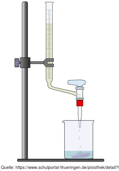 Das Bild gehört zur Serie "Chemie Grafiken". Es zeigt die Titration (Maßanalyse) einer Maßlösung mit Bürette. Das Bild ist unter CC0 lizenziert und kann somit frei verwendet werden.