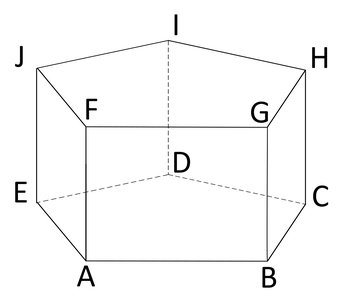Das Bild gehört zur Serie "Geometrie Körper". Es zeigt das Schrägbild eines Prismas mit fünfeckiger Grundfläche. Diese Darstellung wird auch Kavalierperspektive oder im Technischen Zeichnen Frontaldimetrie genannt. Das Bild ist unter CC0 lizenziert und kann somit frei verwendet werden.