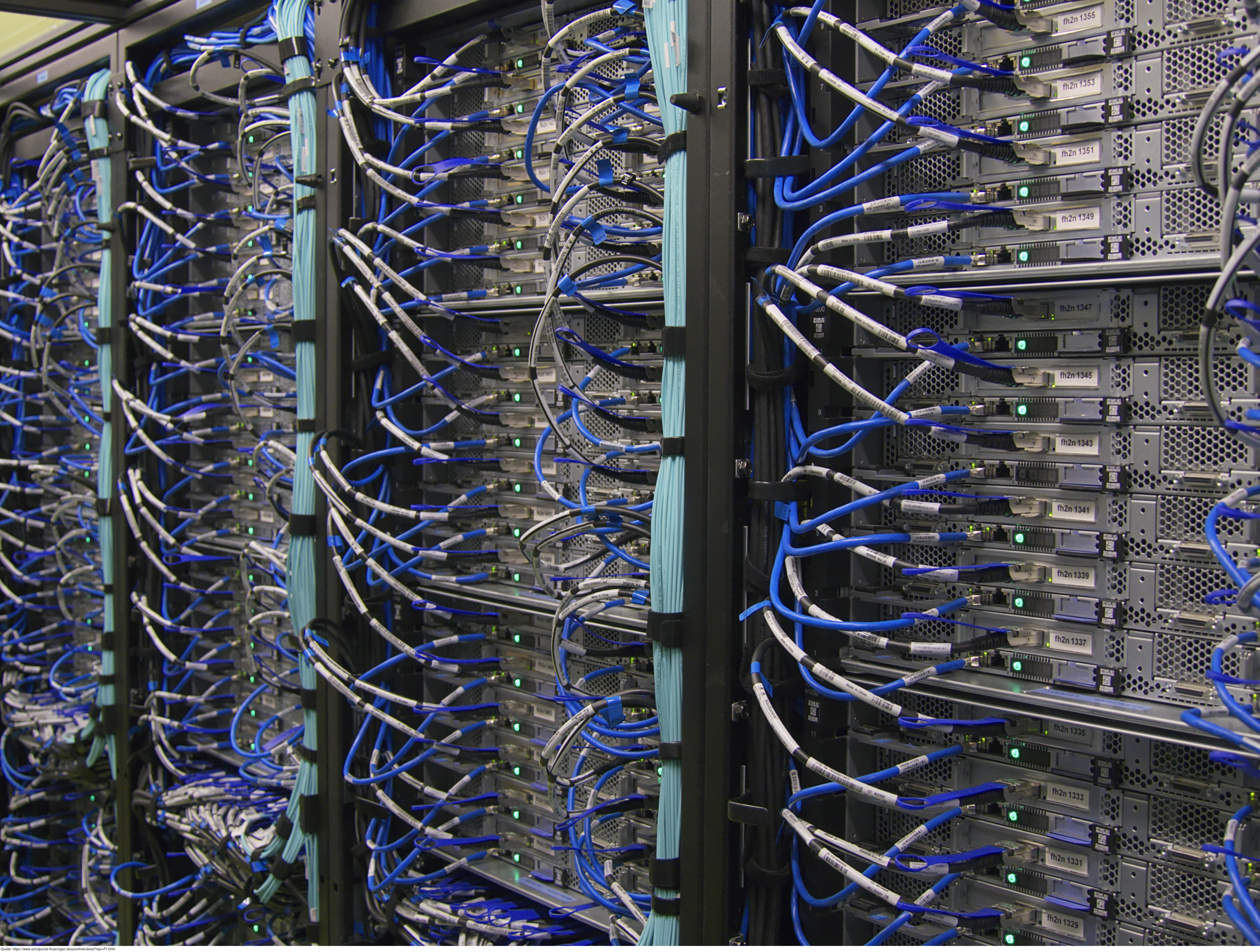 Das Bild gehört zur Serie "Computertechnik". Es zeigt die Rückseiten mehrerer Server. Das Bild ist unter CC0 lizenziert und kann somit frei verwendet werden.