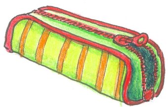 Das Bild gehört zur Serie "Schreibwaren". Es zeigt eine gezeichnete Federtasche bzw. Federmappe. Es gelten die Nutzungsbedingungen der Mediothek und Pixiothek.