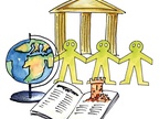 Das Bild gehört zur Serie "Schulfächer". Es zeigt ein gezeichnetes Symbolbild für die Fächergruppe Gesellschaftswissenschaften (GeWi). Es gelten die Nutzungsbedingungen der Mediothek und Pixiothek.