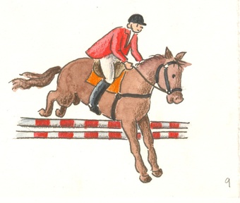 Das Bild gehört zur Serie "Sport". Es zeigt ein gezeichnetes Bild zum Springreiten. Es gelten die Nutzungsbedingungen der Mediothek und Pixiothek.