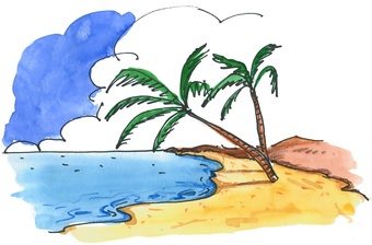 Das Bild gehört zur Serie "Strand". Es zeigt einen gezeichneten Sandstrand am Meer. Es gelten die Nutzungsbedingungen der Mediothek und Pixiothek.