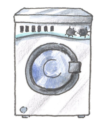 Das Bild gehört zur Serie "Hauswirtschaft". Es zeigt eine gezeichnete Waschmaschine. Es gelten die Nutzungsbedingungen der Mediothek und Pixiothek.