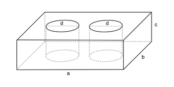 Das Bild gehört zur Serie "Geometrie Körper". Es zeigt einen Quader, durch den zwei kreisrunde Bohrungen verlaufen. Bei Vorgabe von Maßangaben für die bezeichneten Seiten kann das Volumen des Körpers berechnet werden. Das Bild ist unter CC0 lizenziert und kann somit frei verwendet werden.