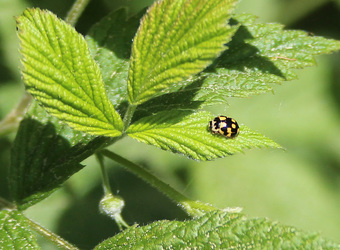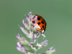 Das Foto hehört zur Serie "Käfer". Es zeigt den Vierzehnpunkt-Marienkäfer oder Schachbrett-Marienkäfer (Propylea quatuordecimpunctata) aus der Familie der Marienkäfer. Es gelten die Nutzungsbedingungen der Mediothek und Pixiothek.
