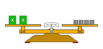 Das Bild gehört zur Serie "Mathematik, Gleichungen". Es veranschaulicht die Lösung einer linearen Gleichung durch Äquivalenzumformung mit dem Bild einer Waage. Zur Gleichung 22 veranschaulichen die Bilder 22-1 bis 22-4 die Umformungsschritte. Das Bild ist unter CC0 lizenziert und kann somit frei verwendet werden.