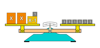 Das Bild gehört zur Serie "Mathematik, Gleichungen". Es veranschaulicht die Lösung einer linearen Gleichung durch Äquivalenzumformung mit dem Bild einer Waage. Zur Gleichung 13 (3x - 1 = 5) veranschaulichen die Bilder 13-1 bis 13-4 die Umformungsschritte. Das Bild ist unter CC0 lizenziert und kann somit frei verwendet werden.