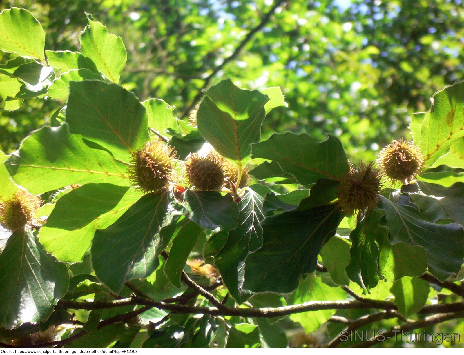 Das Foto gehört zur Serie "Laubbäume". Es zeigt reife Bucheckern an einer Buche. Es gelten die Nutzungsbedingungen der Mediothek und Pixiothek.