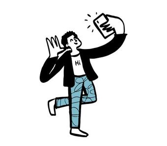 Die Zeichnung "selfie" aus der Serie "Open Doodles" zeigt einen jungen Mann, der sich mit seinem Smartphone selbst fotografiert - Selfie. Das Bild ist unter CC0 lizenziert und kann somit frei verwendet werden.