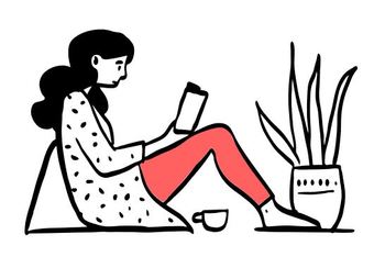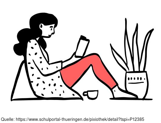 Die Zeichnung "reading-side" aus der Serie "Open Doodles" zeigt eine auf dem Boden sitzende Frau, die in einem Buch liest. Das Bild ist unter CC0 lizenziert und kann somit frei verwendet werden.