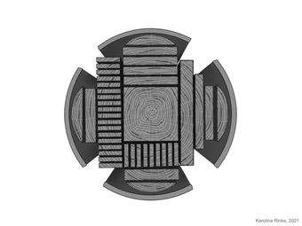 Die Grafik gehört zur Serie "Holzbearbeitung". Dargestellt sind Arten von Schnittholz, die in einem Sägewerk aus einem Baumstamm hergestellt werden, Bild-Variante: s/w, ohne Beschriftung. Es gelten die Nutzungsbedingungen der Mediothek und Pixiothek.
