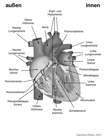 Das Bild gehört zur Serie "Organe des Menschen". Das Bild verdeutlicht den Aufbau des menschlichen Herzens. Bild-Variante: Herz; s/w; beschriftet. Es gelten die Nutzungsbedingungen der Mediothek und Pixiothek.