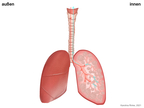 Das Bild gehört zur Serie "Organe des Menschen". Das Bild verdeutlicht den Aufbau der menschlichen Lunge. Bild-Variante: Lunge mit Luftkreislauf; farbig; beschriftet. Es gelten die Nutzungsbedingungen der Mediothek und Pixiothek.