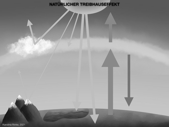 Das Bild verdeutlicht den natürlichen Treibhauseffekt. Bild-Variante: s/w; unbeschriftet. Es gelten die Nutzungsbedingungen der Mediothek und Pixiothek.