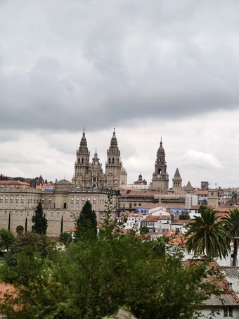 Das Bild gehört zur Serie "Jakobsweg - Camino Francés". Abgebildet ist ein Blick auf Santiago de Compostela. Es gelten die Nutzungsbedingungen der Mediothek und Pixiothek.
