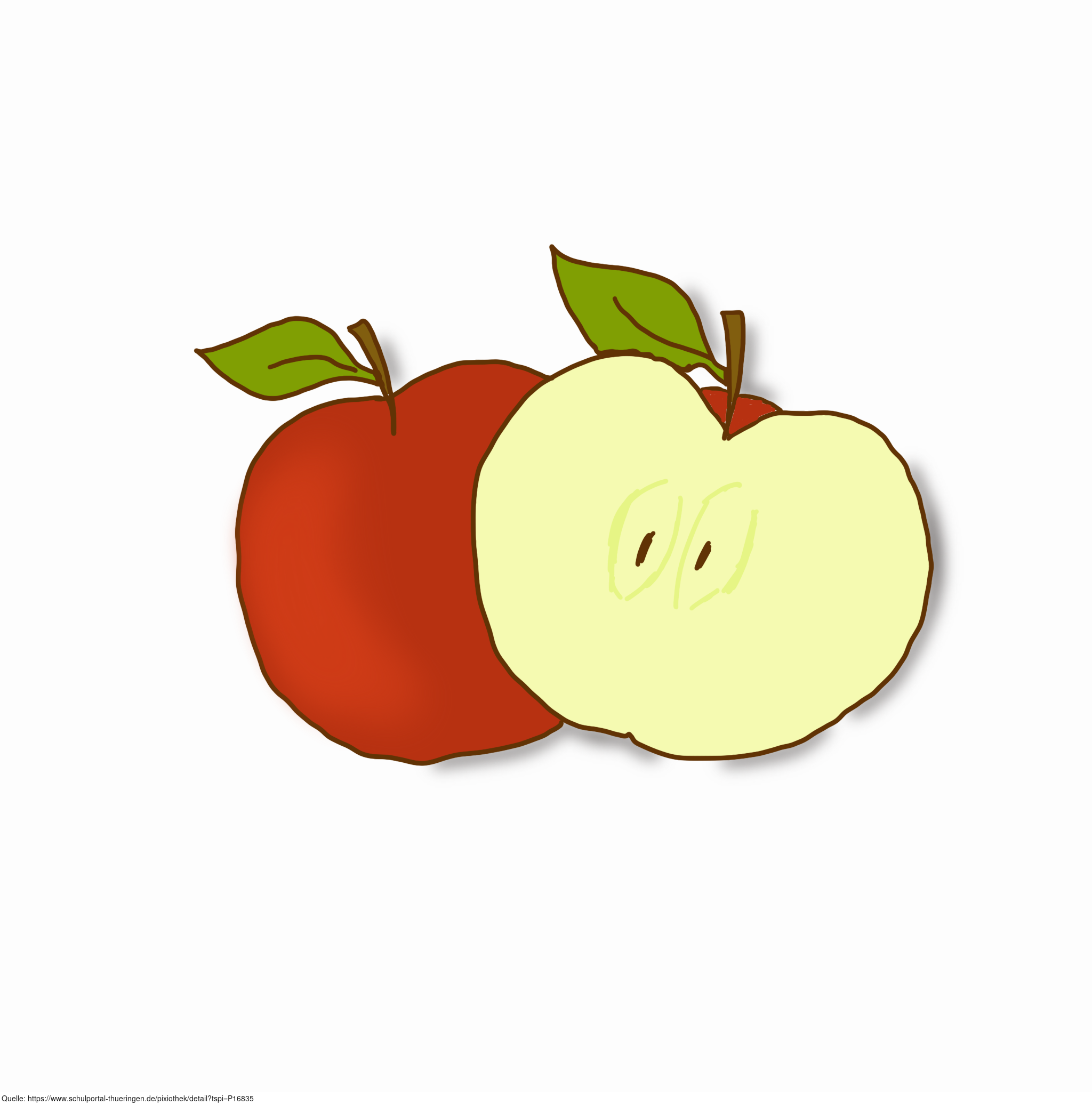 Das Bild zeigt einen gezeichneten Apfel. Das Bild ist unter CC0 lizenziert und kann somit frei verwendet werden.
