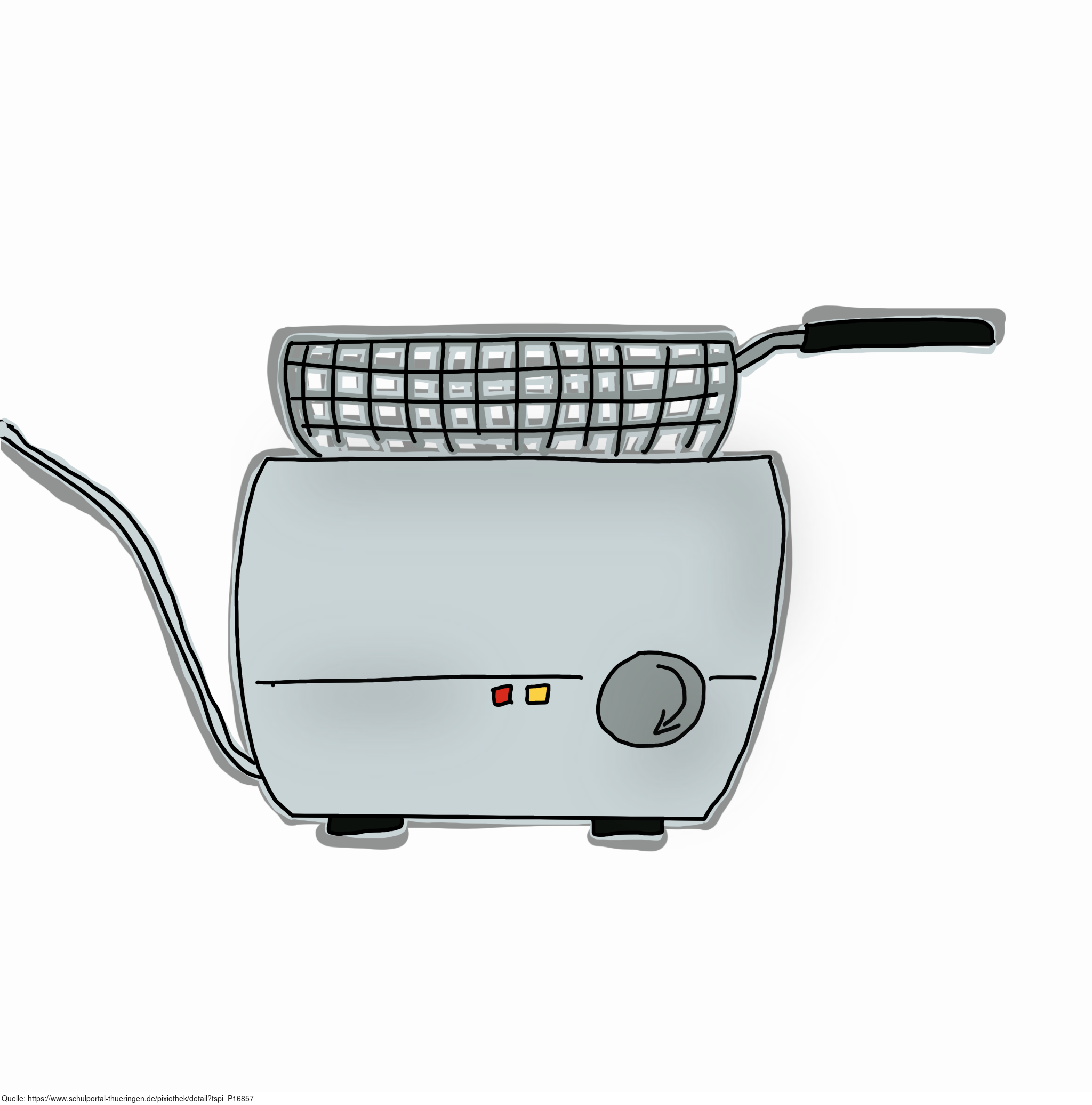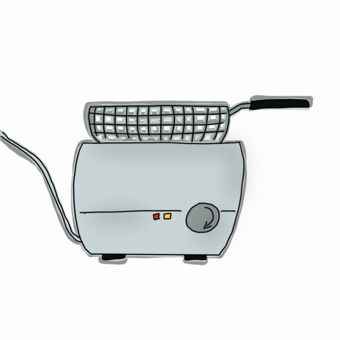 Das Bild zeigt eine gezeichnete Fritteuse. Das Bild ist unter CC0 lizenziert und kann somit frei verwendet werden.