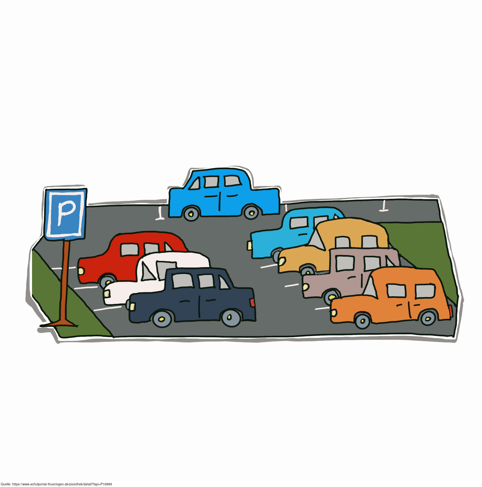 Das Bild zeigt einen gezeichneten Parkplatz. Das Bild ist unter CC0 lizenziert und kann somit frei verwendet werden.