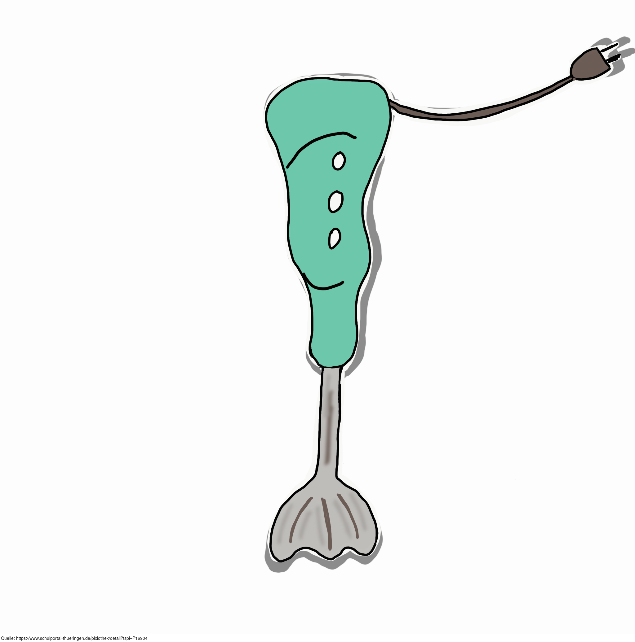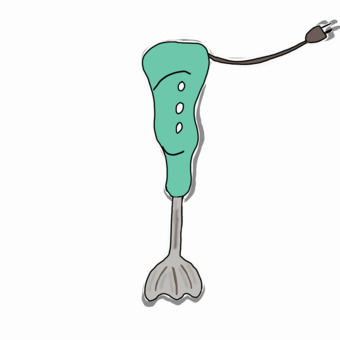 Das Bild zeigt einen gezeichneten Stabmixer oder Pürierstab. Das Bild ist unter CC0 lizenziert und kann somit frei verwendet werden.