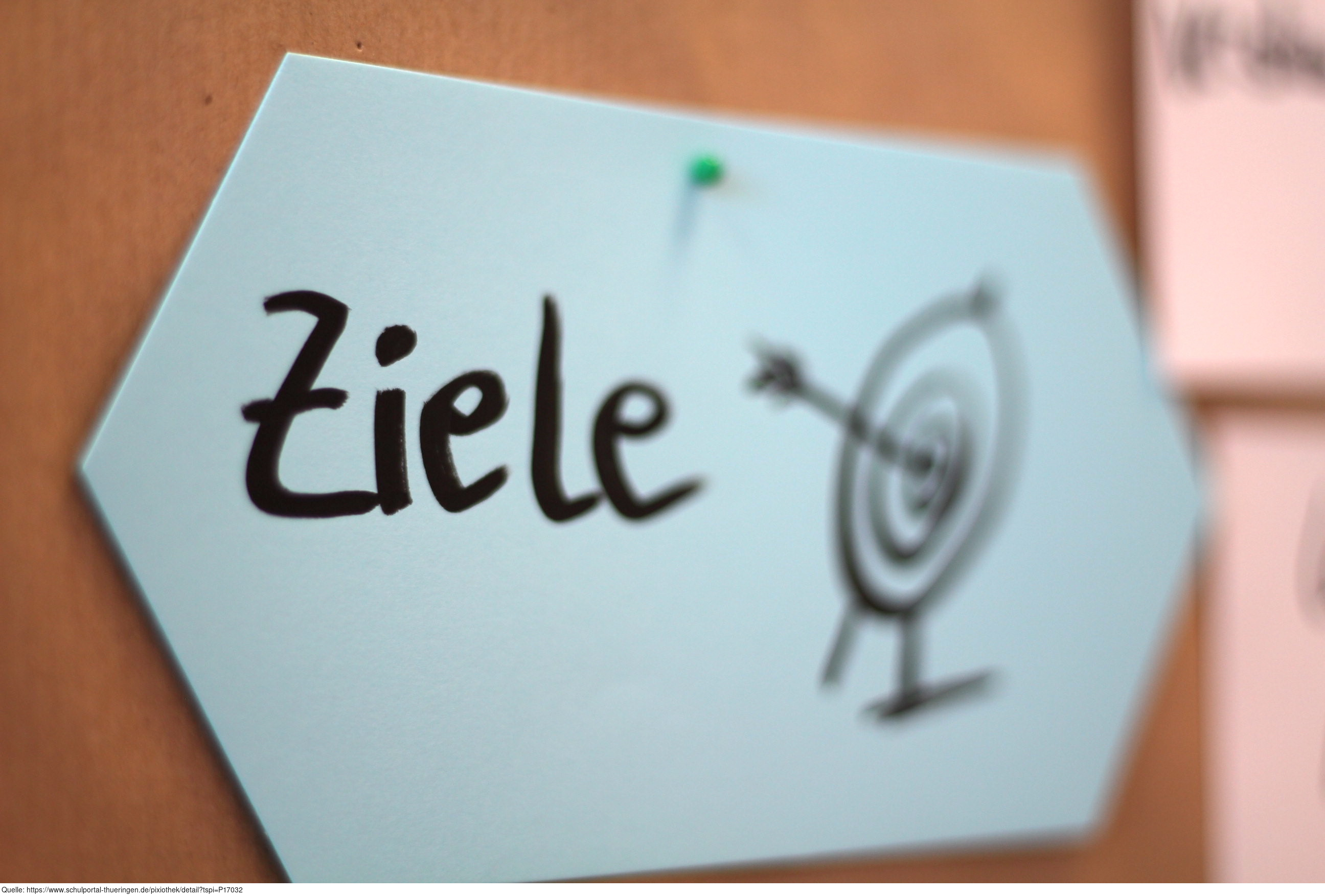 Das Bild zeigt eine Moderationskarte mit der Aufschrift "Ziele", fotografiert von Elisabeth Scherer für SeLL, HHU Düsseldorf. Es gelten die Nutzungsbedingungen der Mediothek und Pixiothek.