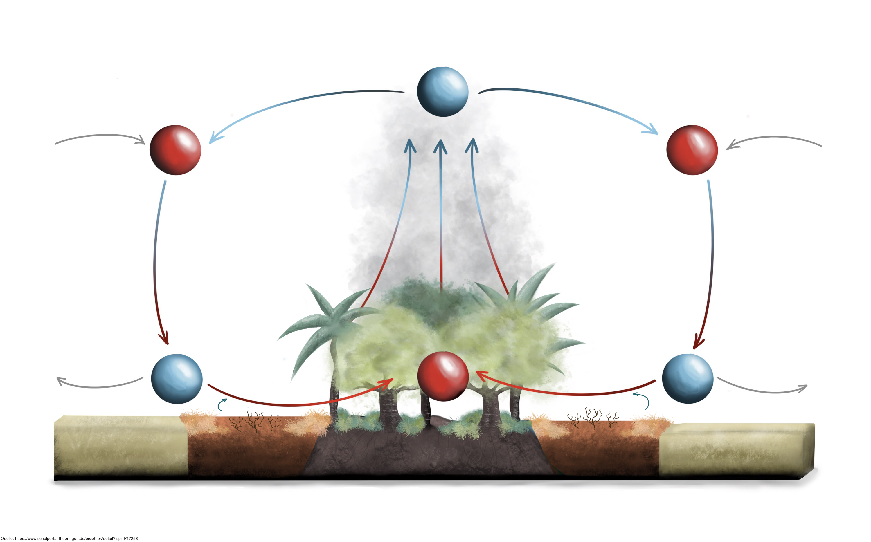 Das Bild gehört zur Serie „Windsysteme“. Es verdeutlicht aus der Querschnittsperspektive die Windzirkulation vom Äquator bis zu den Wendekreisen. Variante: farbig; unbeschriftet. Es gelten die Nutzungsbedingungen der Mediothek und Pixiothek.