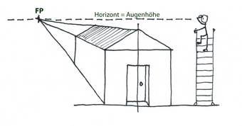 Das Bild gehört zur Serie "Projektionsarten". Es zeigt die Perspektive mit einem Fluchtpunkt am Beispiel eines Gebäudes. Es gelten die Nutzungsbedingungen der Mediothek und Pixiothek.