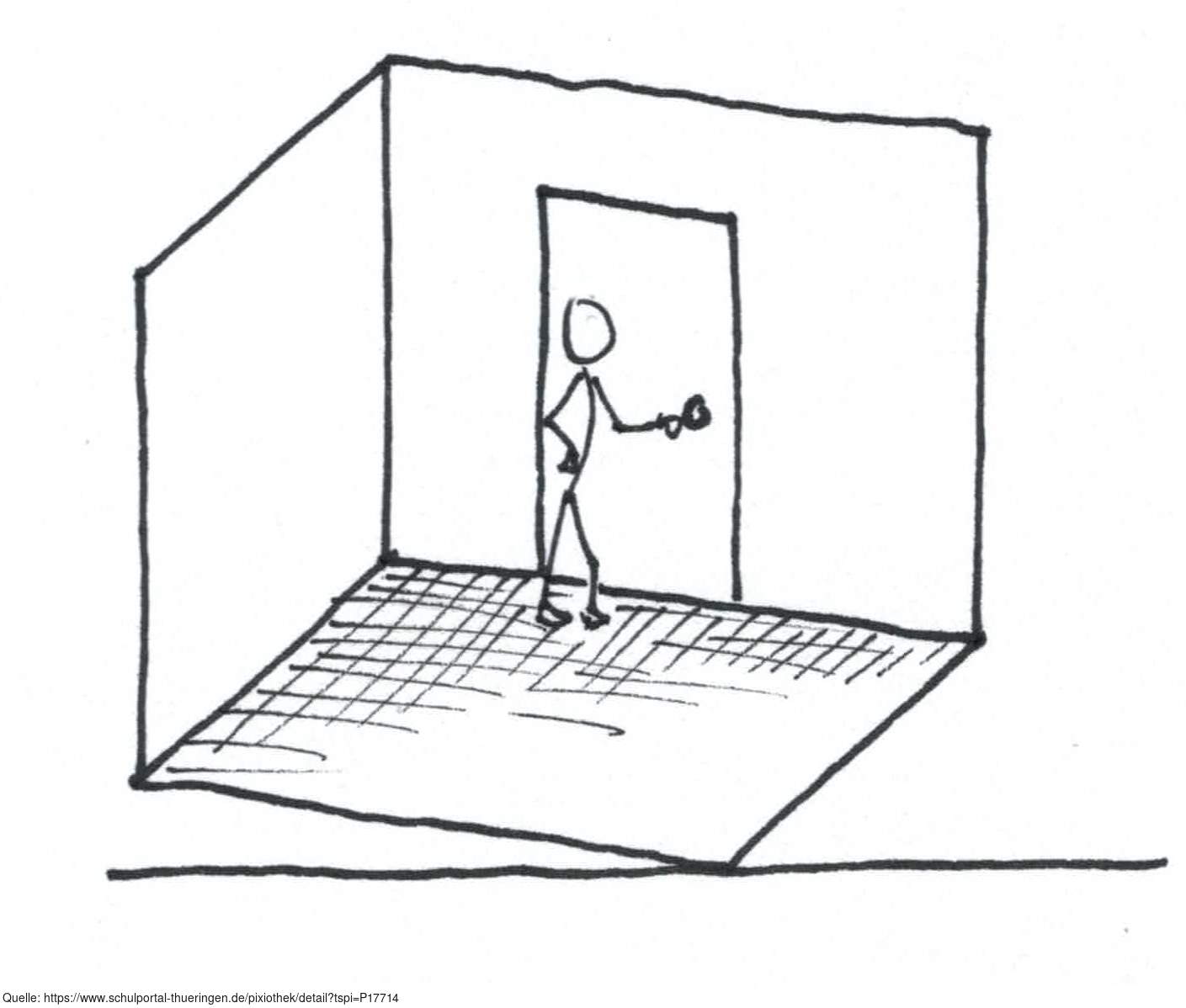 Das Bild gehört zur Serie "Projektionsarten". Es zeigt die dimetrische Projektion am Beispiel eines Innenraumes. Es gelten die Nutzungsbedingungen der Mediothek und Pixiothek.