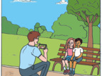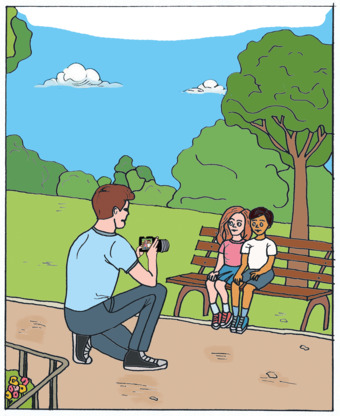 Das Bild zeigt einen Vater, der seine beiden Kinder mit einem Fotoapparat fotografiert. Das Bild kann als Teil einer Bildergeschichte verwendet werden - siehe Funktionslink "Weitere Bilder der Serie". Es gelten die Nutzungsbedingungen der Mediothek und Pixiothek.