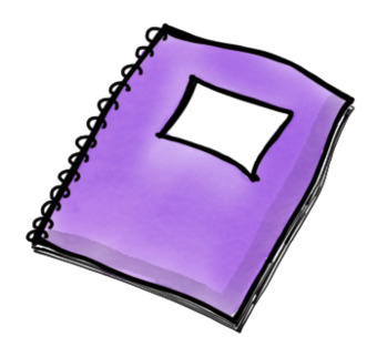 Das Bild zeigt ein gezeichnetes violettes Heft. Das Bild ist unter CC0 lizenziert und kann somit frei verwendet werden. Es ist neben weiteren Bildern auch hier zu finden: https://moodlelab.moodleschule.de/