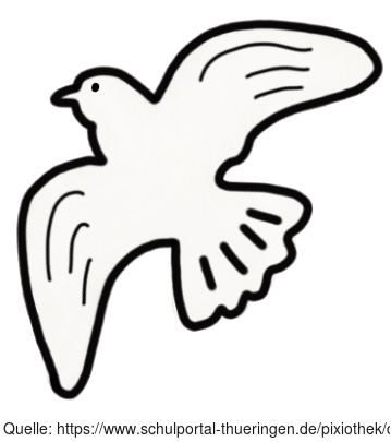 Das Bild zeigt eine gezeichnete Taube. Das Bild ist unter CC0 lizenziert und kann somit frei verwendet werden. Es ist neben weiteren Bildern auch hier zu finden: https://moodlelab.moodleschule.de/