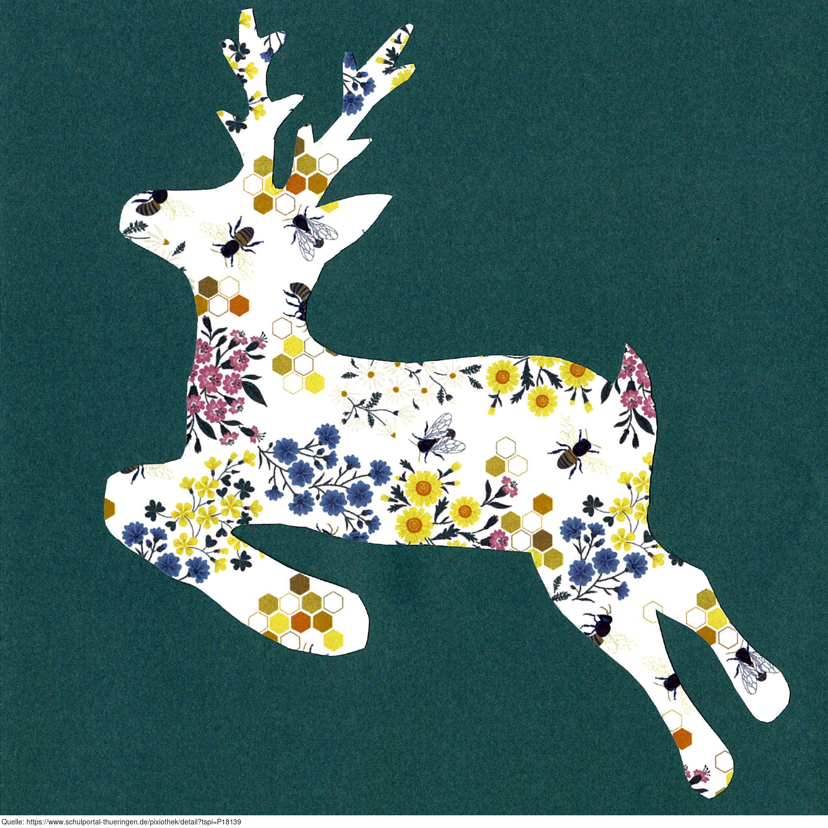 Das Bild ist Teil der Serie „Weihnacht“. Es zeigt einen gezeichneten und ausgeschnittenen Hirsch aus Papier. Es gelten die Nutzungsbedingungen der Mediothek und Pixiothek.