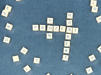 Aus Buchstaben wurden die Worte „Prozenz, Von und Hundert“ gelegt.