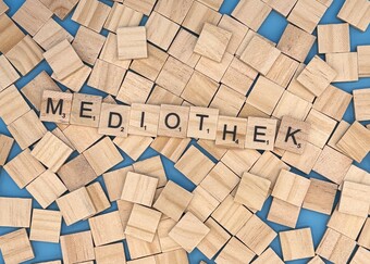 Aus Buchstaben wurde das Wort "Mediothek" gelegt.