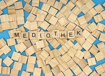 Aus Buchstaben wurde das Wort "Mediothek" gelegt. Es gelten die Nutzungsbedingungen der Mediothek und Pixiothek.