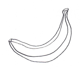 Das Bild zeigt eine gezeichnete Banane (s/w). Es gehört zur Serie "Ernährungspyramide zum Basteln und Gestalten" und findet u.a. im gleichnamigen Lernobjekt unter https://www.schulportal-thueringen.de/web/guest/media/detail?tspi=18517 Verwendung. Es gelten die Nutzungsbedingungen der Mediothek und Pixiothek.