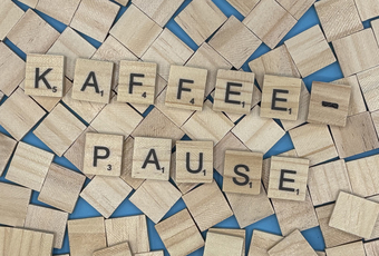 Aus Buchstaben wurde das Wort "Kaffeepause" gelegt. Es gelten die Nutzungsbedingungen der Mediothek und Pixiothek.