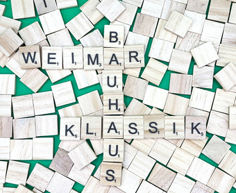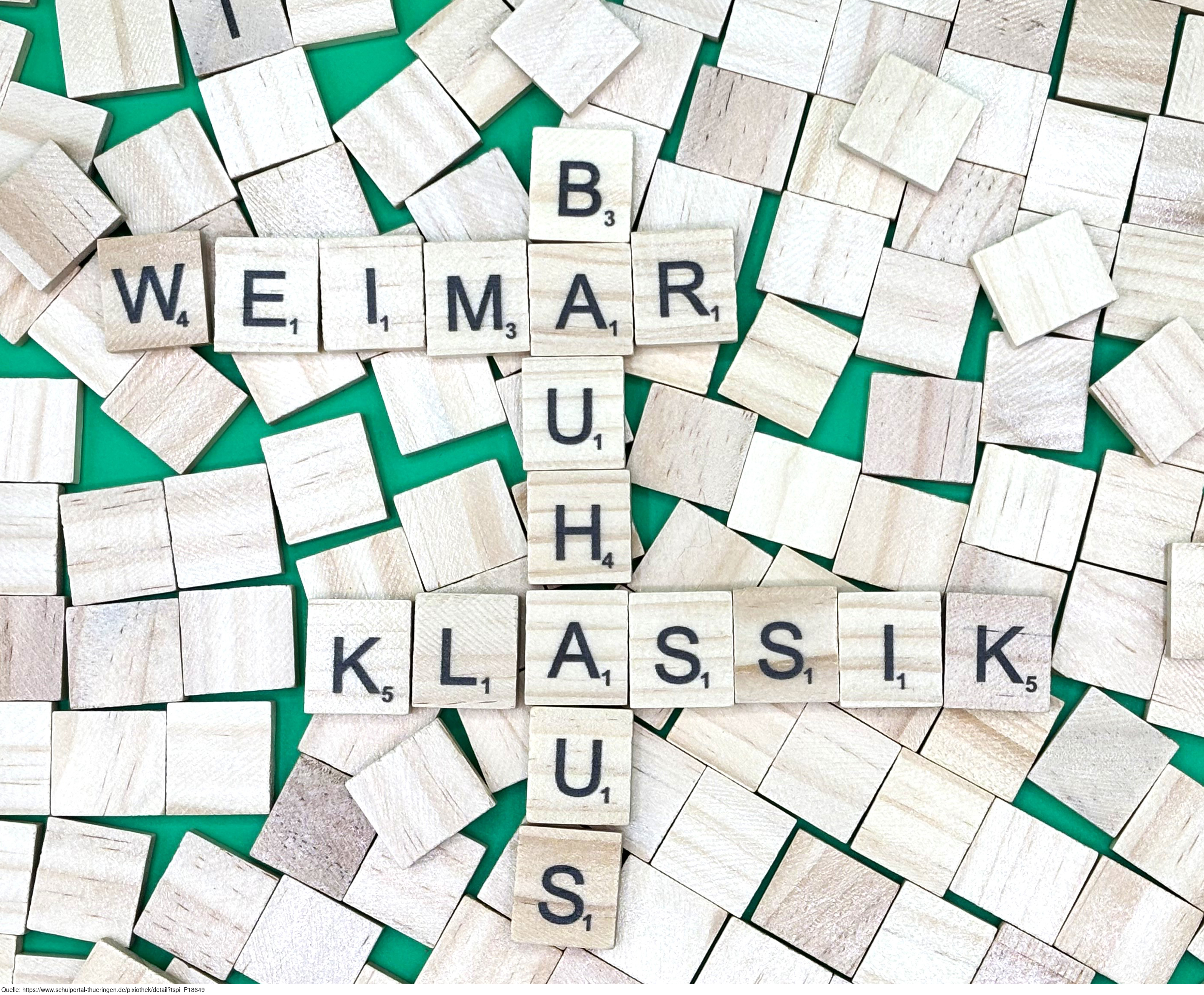 Aus Buchstaben wurden die Begriffe "Weimar", "Bauhaus" und "Klassik" gelegt. Es gelten die Nutzungsbedingungen der Mediothek und Pixiothek.