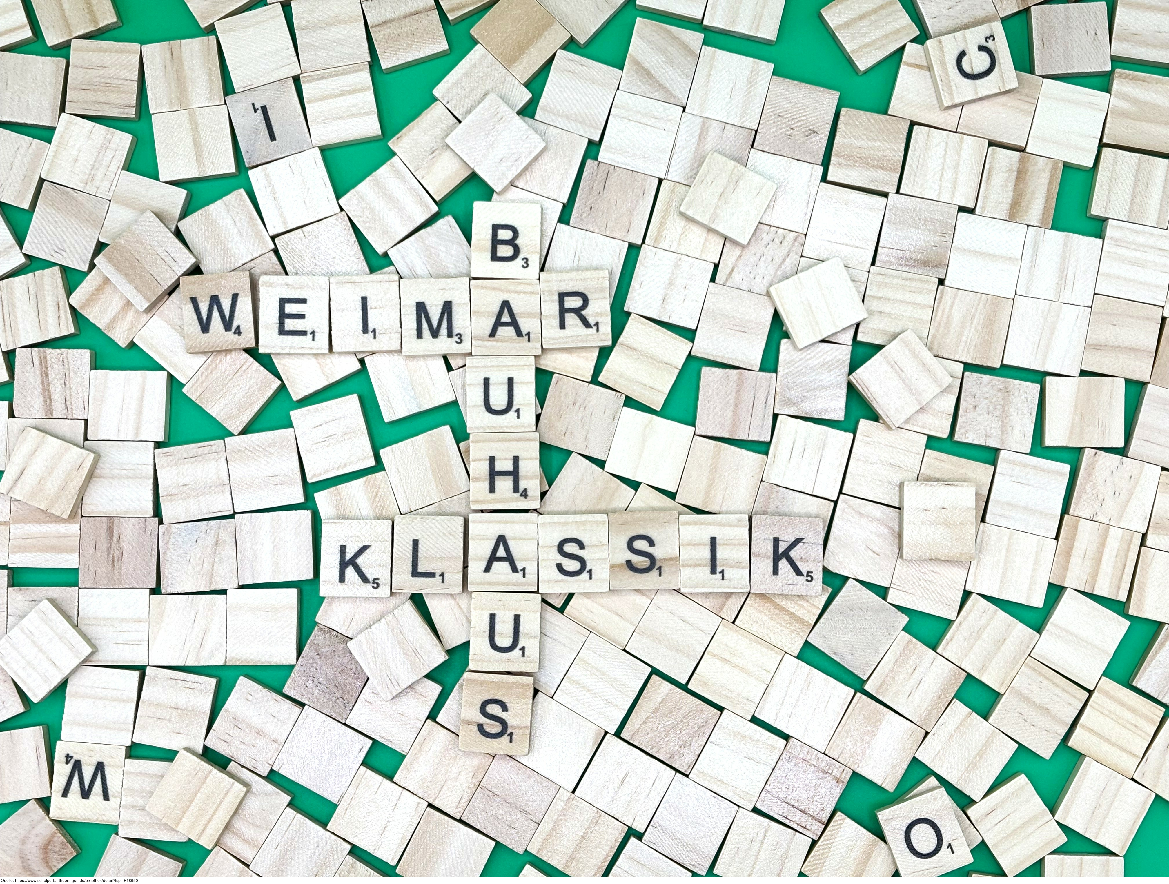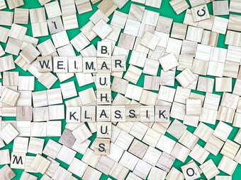 Aus Buchstaben wurden die Begriffe "Weimar", "Bauhaus" und "Klassik" gelegt. Es gelten die Nutzungsbedingungen der Mediothek und Pixiothek.